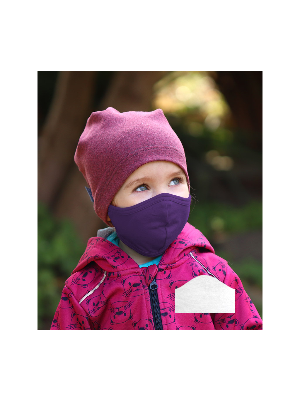 Bavlněná rouška DVOUVRSTVÁ S KAPSOU tmavě fialová + 1ks filtru - pro děti (cca 3-12 let)