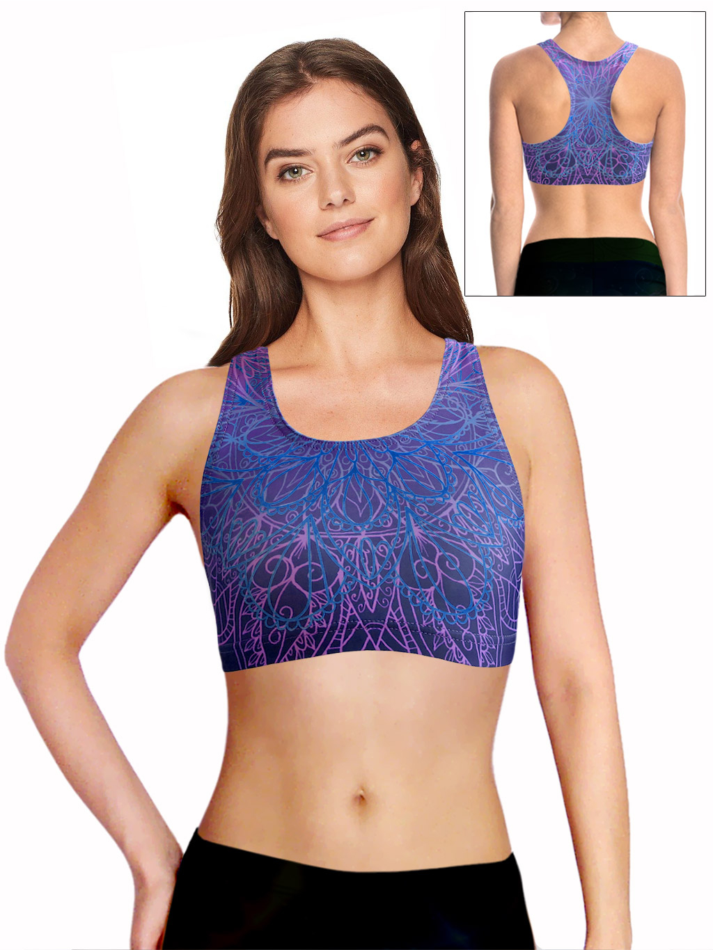 - sportovní podprsenka (top) je z funkčního a velmi příjemného materiálu s digitálním potiskem, který je velmi pružný a přizpůsobí se každé postavě