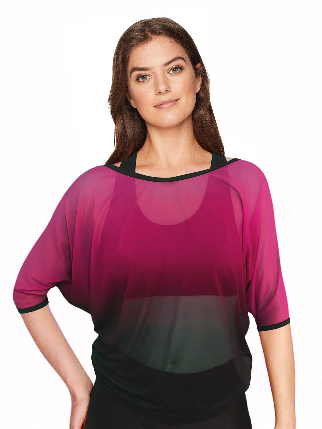 Dámské sportovní tričko ze síťoviny ombré D351 t122 černorůžová
