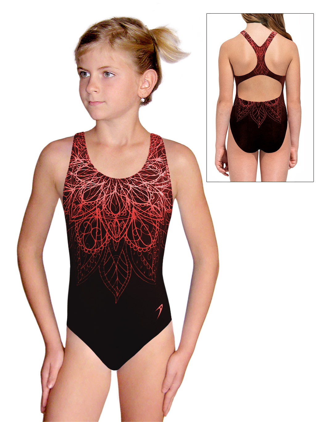 Dívčí sportovní plavky jednodílné PD623 t170a černočervená
