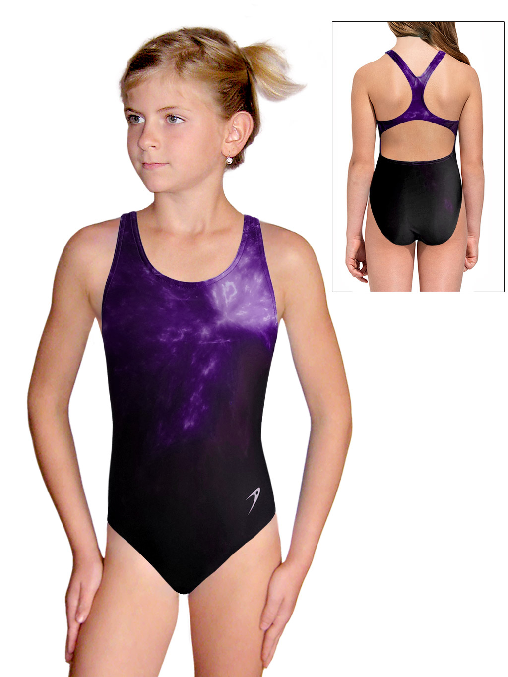 Dívčí sportovní plavky jednodílné PD623 t189 černofialová
