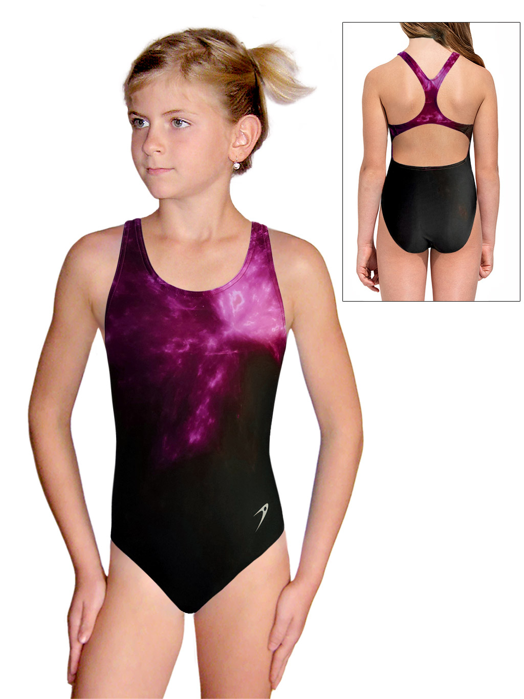 Dívčí sportovní plavky jednodílné PD623 t189 černorůžová