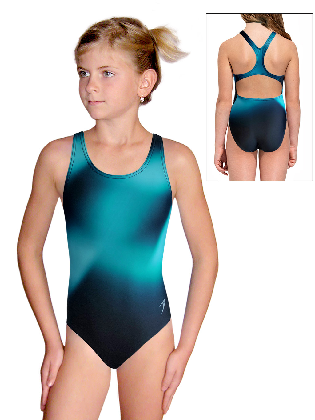 Dívčí sportovní plavky jednodílné PD623 t256ct černotyrkysová