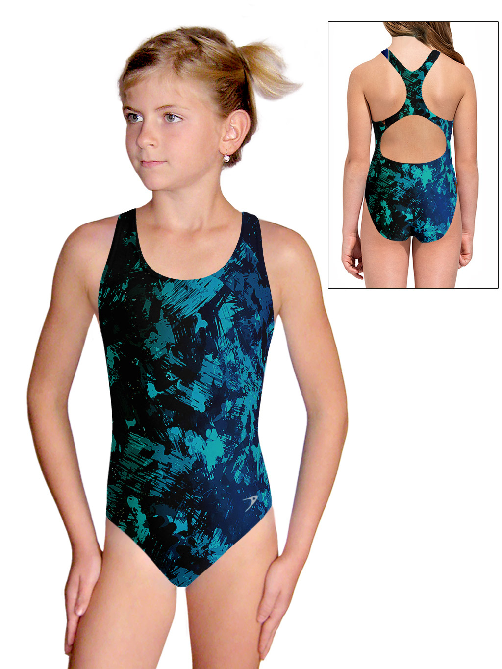 Dívčí sportovní plavky jednodílné PD623 v537 s petrolejovou