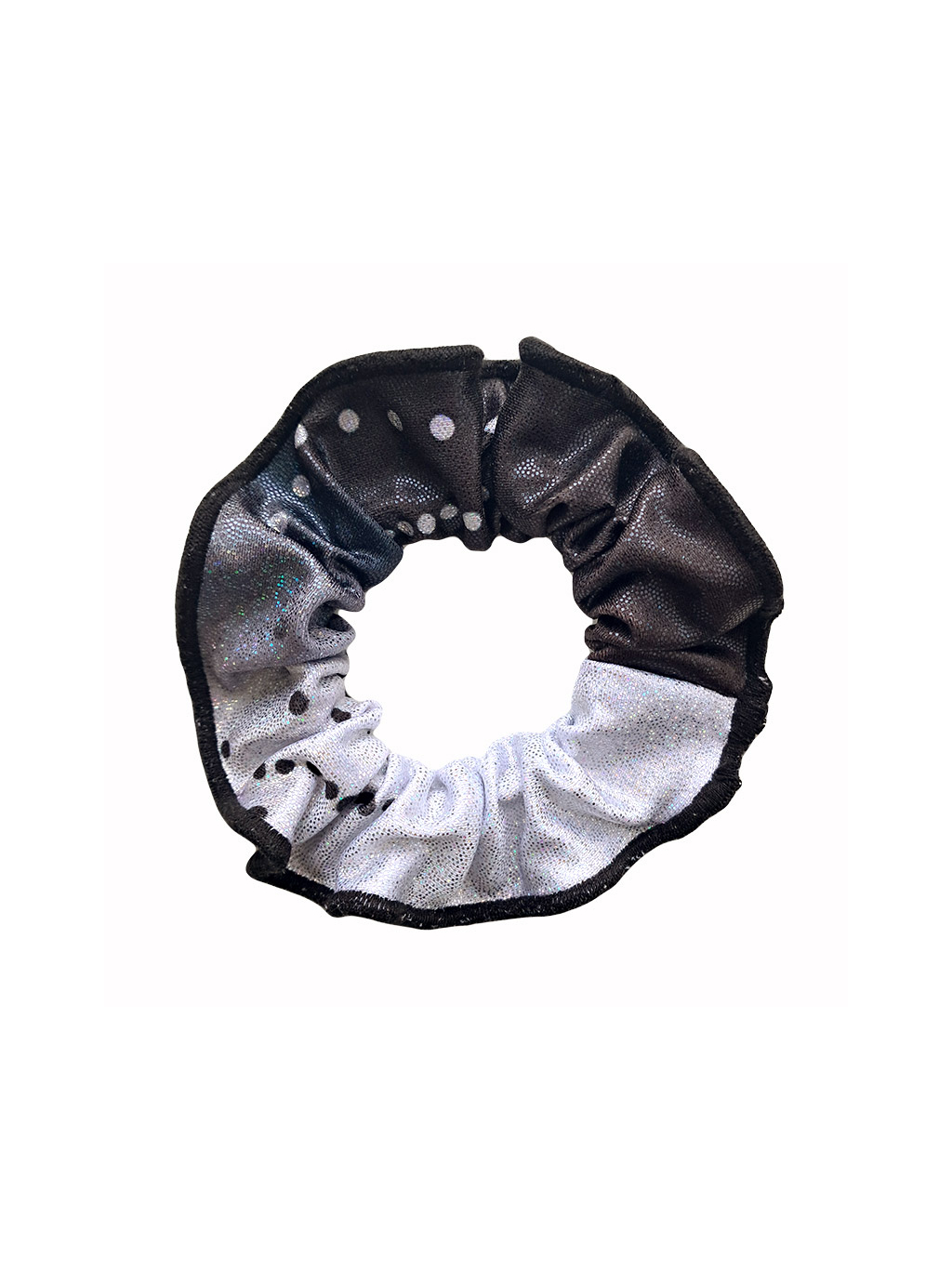 Gumička do vlasů - scrunchie - t237 černobílá s šedou třpytivá metalíza