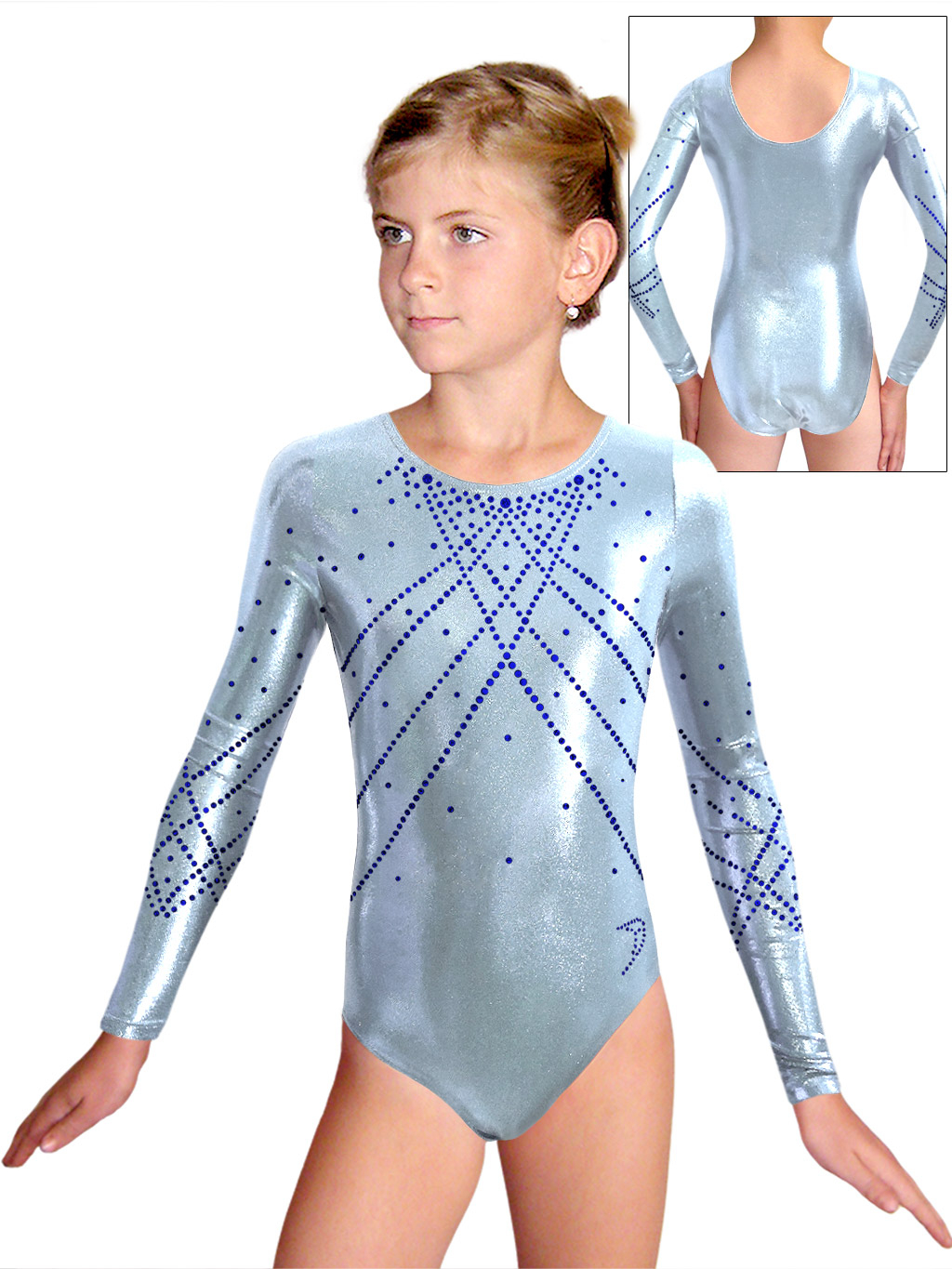 - gymnastický dres je z velmi lesklé metalické plavkoviny