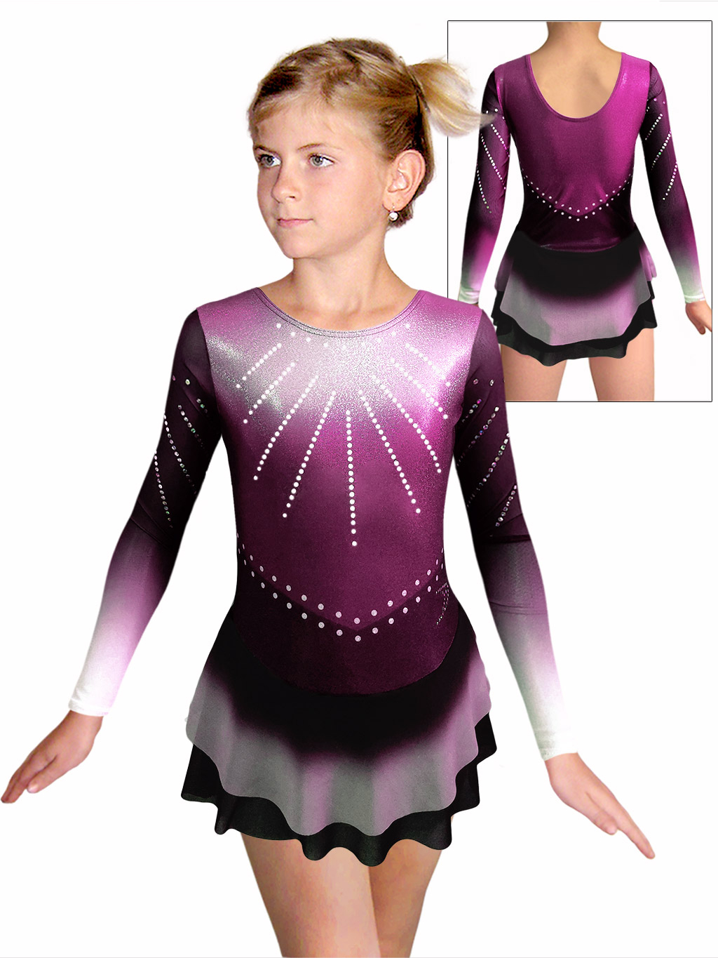 - šaty jsou na rukávech ozdobeny motivem z nažehlovacích flitrů. Flitry dobře drží, při cvičení netlačí a mají vysoký duhový lesk