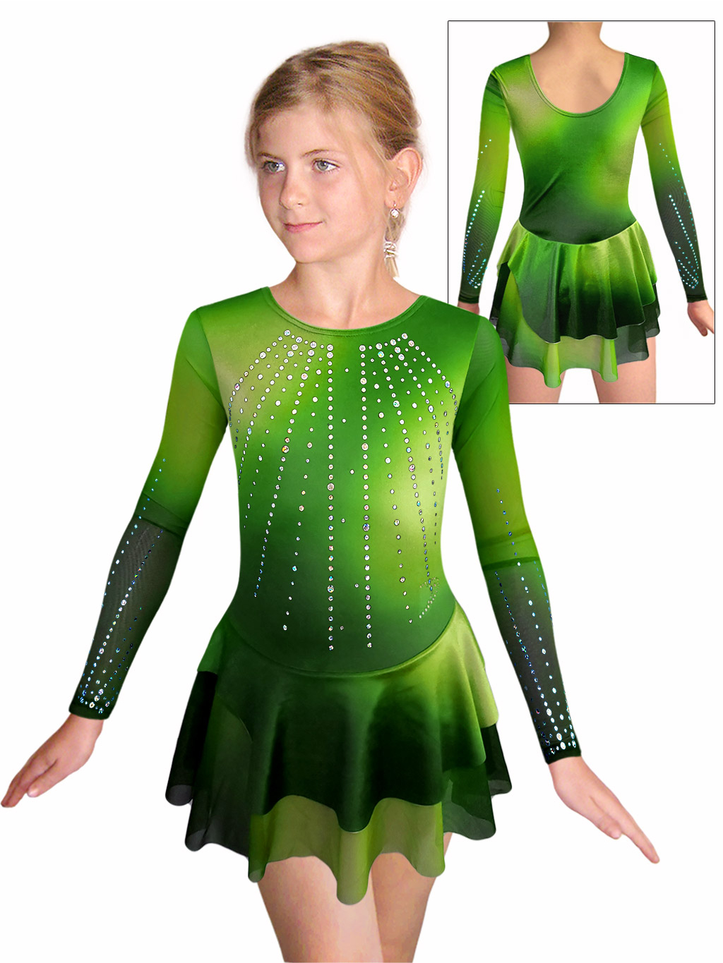 Krasobruslařské šaty - trikot K749 t243 F169pr zelená samet s tylovými rukávy
