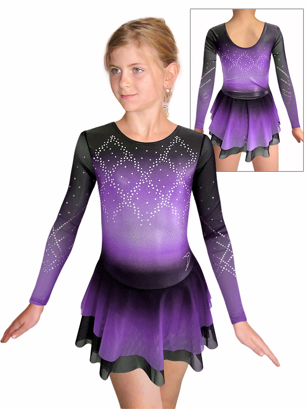 Krasobruslařské šaty - trikot K749 t247 F144r fialová třpytivá metalíza s tylovými rukávy