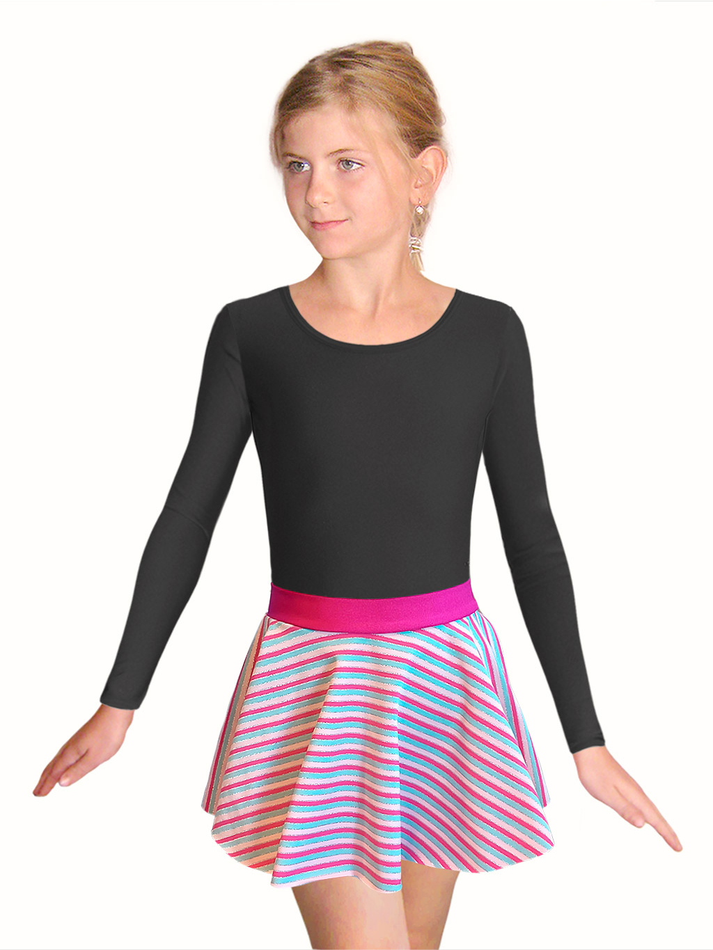 - roztomilá kolová sukénka je z proužkovanéhomatného úpletu , pásek je z lesklé plavkoviny